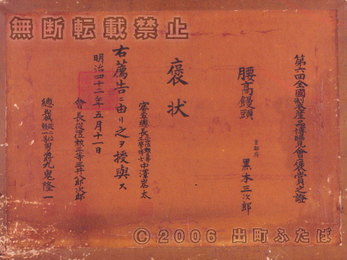 明治四十二年 第六回全国製産品博覧会褒賞之證