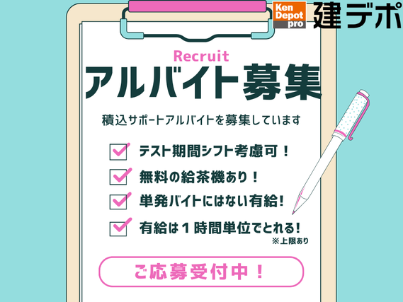 株式会社建デポ 練馬春日町店 【時給1,650円(時間手当含)】☆履歴書不要 ☆有給休暇あり!週2日、1日2時間~で募集中!!テスト休みも取りやすい! 建材店の積込み、品出し、レジ手伝い等(建デポ練馬春日町店)/ 0218d