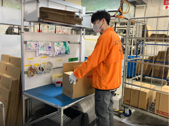 ・ピッキングされた商品を検品し、正しい商品か確認して段ボール箱へ投入