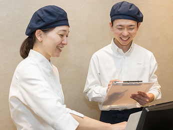 接客ルールの指導やマナー研修、動画研修に加え、店舗でのだしの試食など、仕事の基礎から商品知識まで丁寧にお教えします。