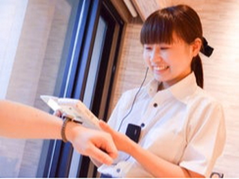 ホールスタッフのお仕事はお席へのご案内やオーダーテイク(ハンディを使用)、配膳などが中心