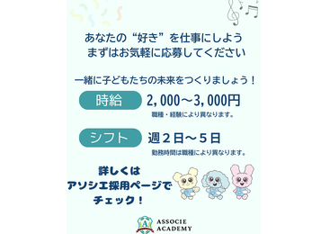 アソシエの魅力を詰めこんだ赤ちゃんから大人まで通えるスクールです🎵子どもたちの“できた!”を一緒に育ててくれる インストラクターを大募集します!